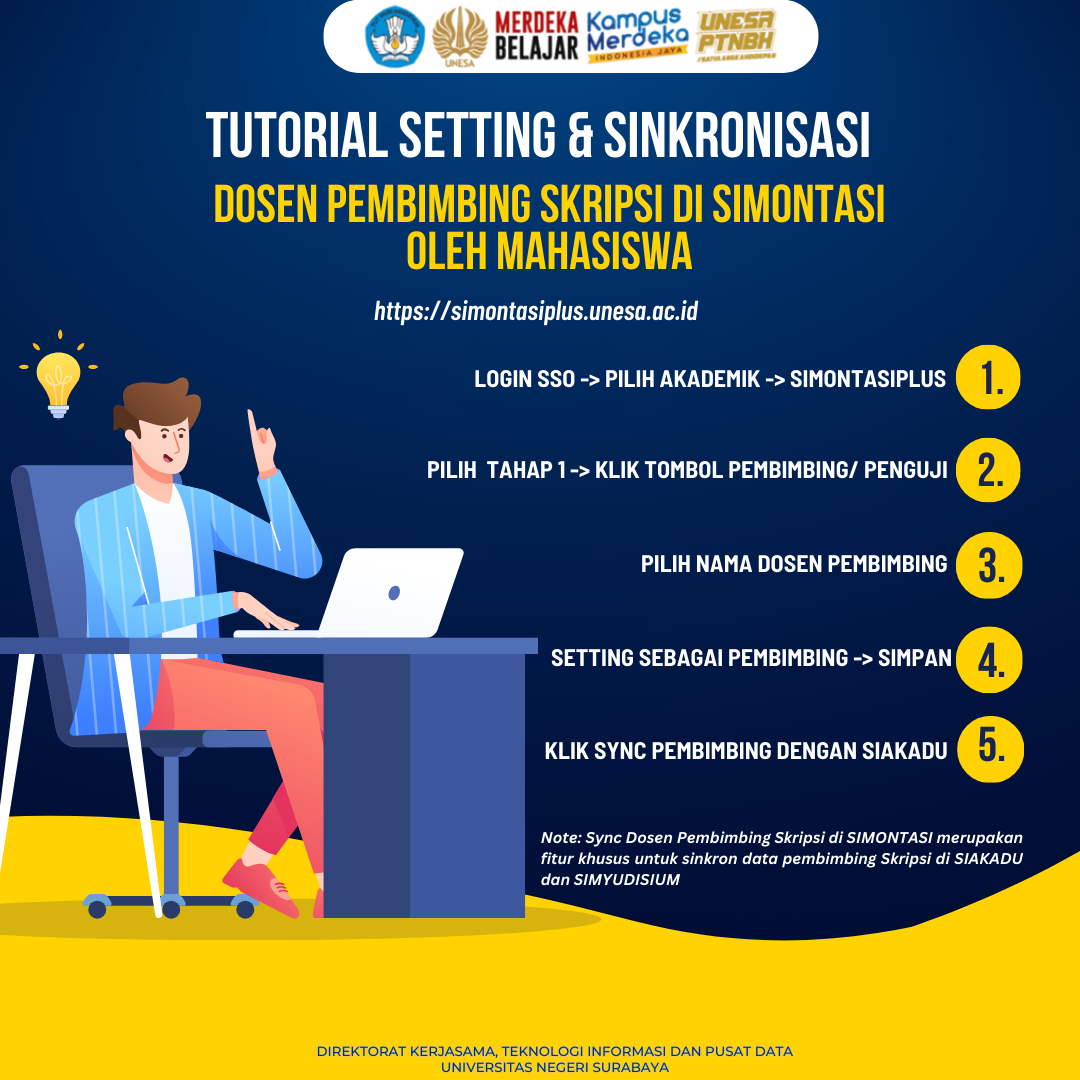 TUTORIAL Setting & SINKRONISASI Dosen Pembimbing Skripsi di SIMONTASI oleh mahasiswa |