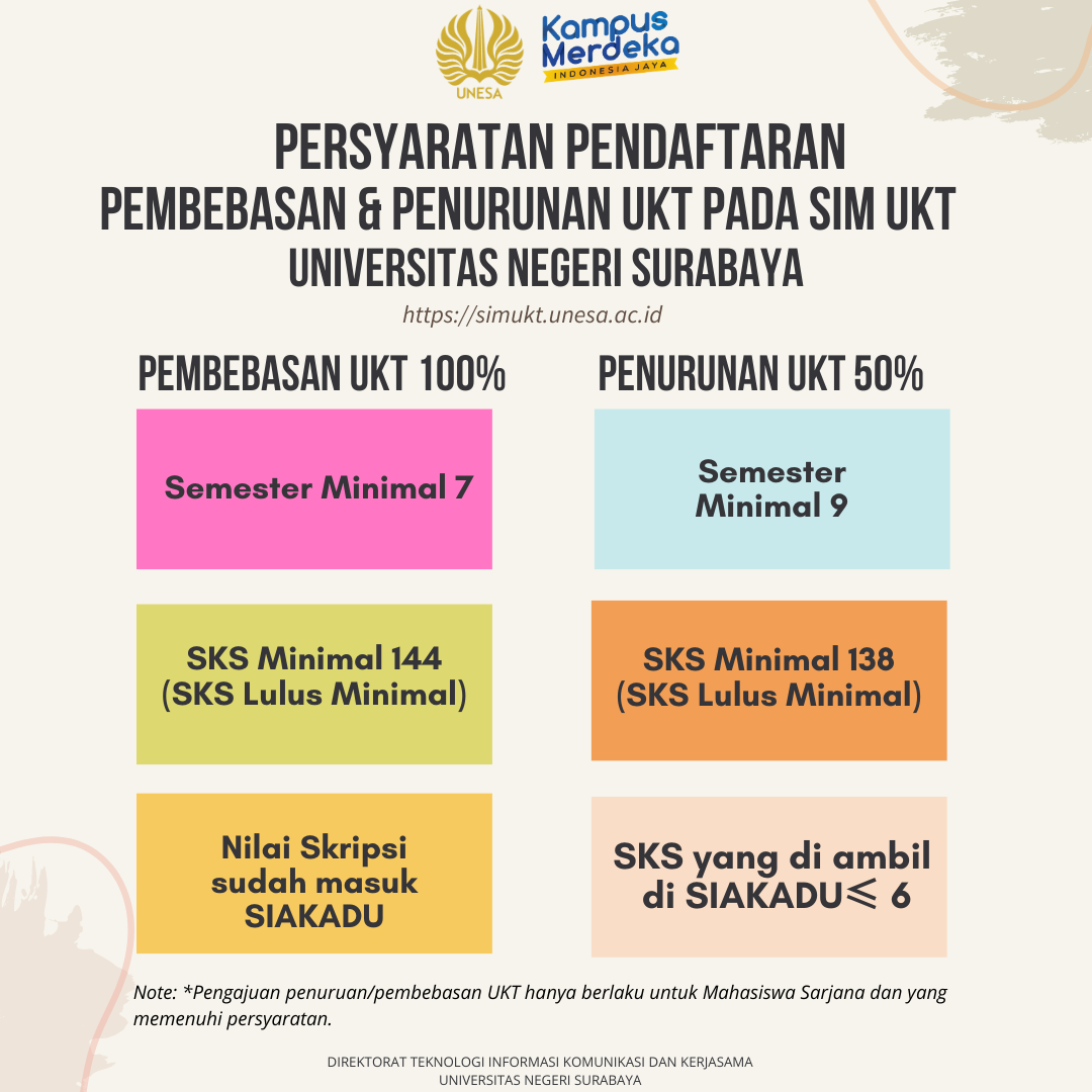 Persyaratan Pengajuan Penurunan/ Pembebasan UKT Mahasiswa Unesa |